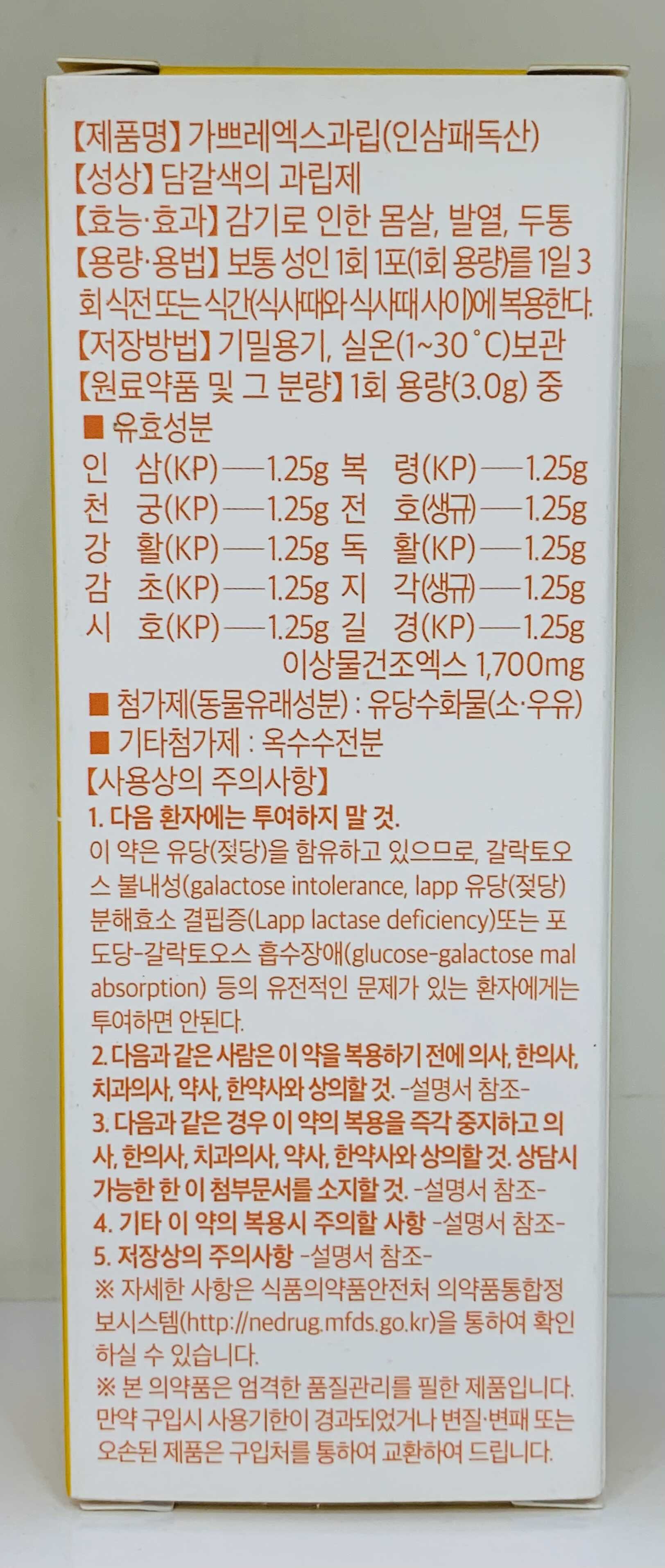 가쁘레 엑스과립(인삼패독산) - 감기몸살 발열 두통